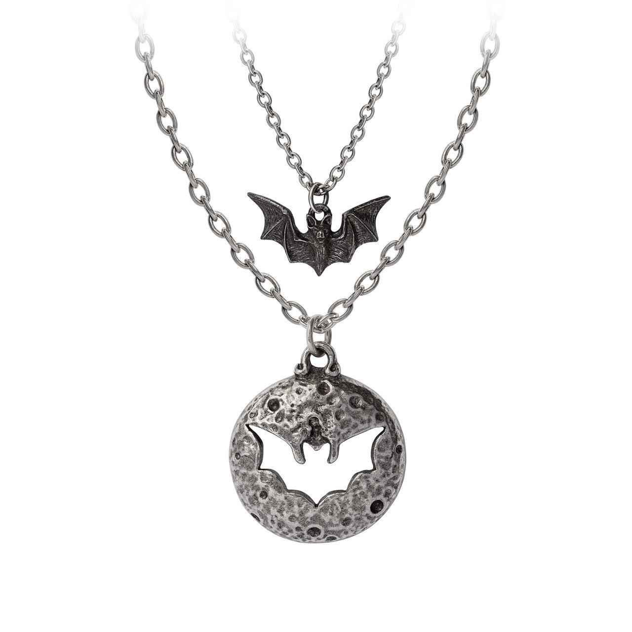 Luna Roost Bat and Moon Paired Necklaces by Alchemy Gothic.