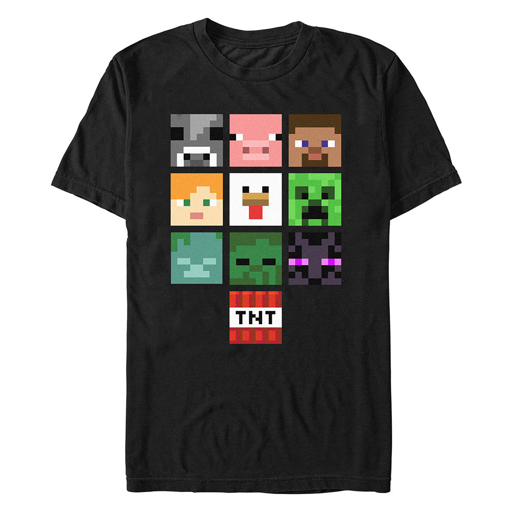 Show off your love for Minecraft in style with Minecraft All The Big Faces Adult T-Shirt! Featuring bold, vibrant artwork, this tee showcases your favorite blocky characters front and center.