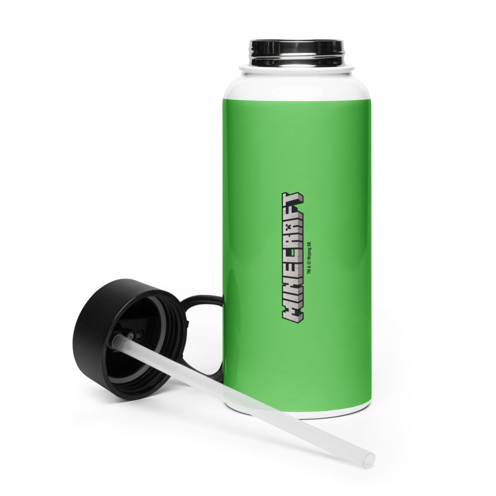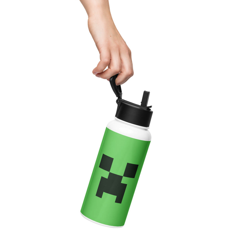 Minethtcraft Creeper Big Face Stainless Steel Water Bottle with a Straw Lid
