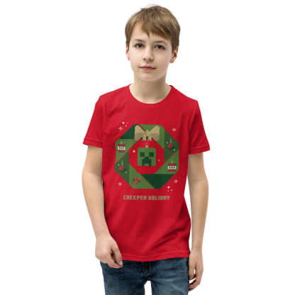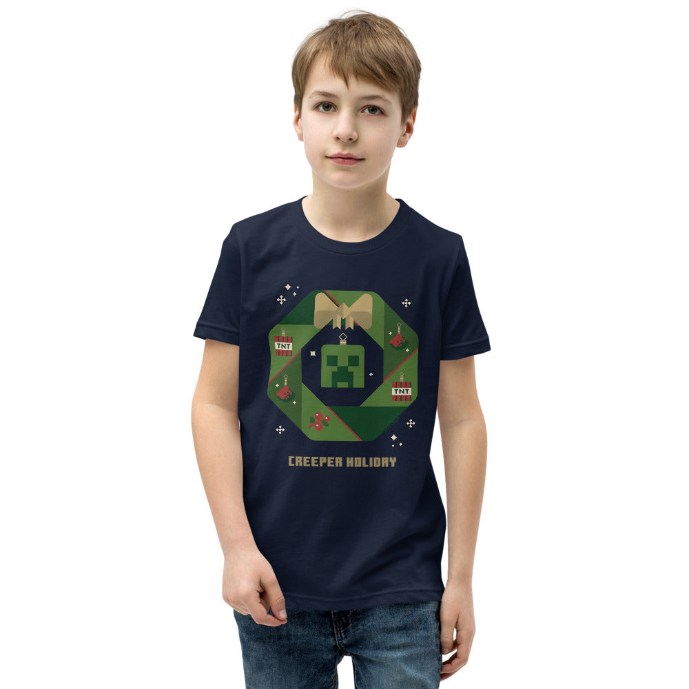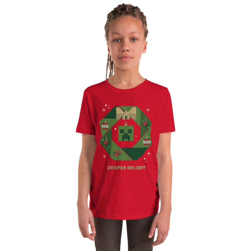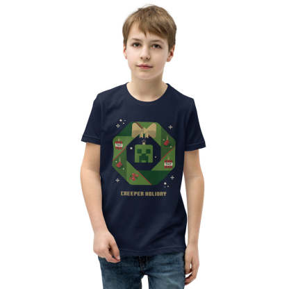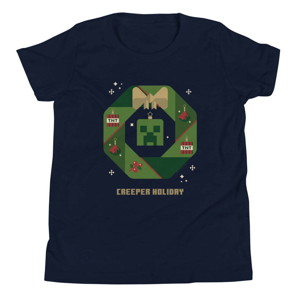 Get your little one ready for the holidays with this Minecraft Creeper Holiday Wreath Kids T-Shirt! Featuring the iconic Creeper surrounded by a festive wreath, this tee brings a perfect blend of gaming fun and holiday cheer.