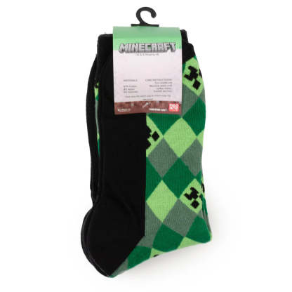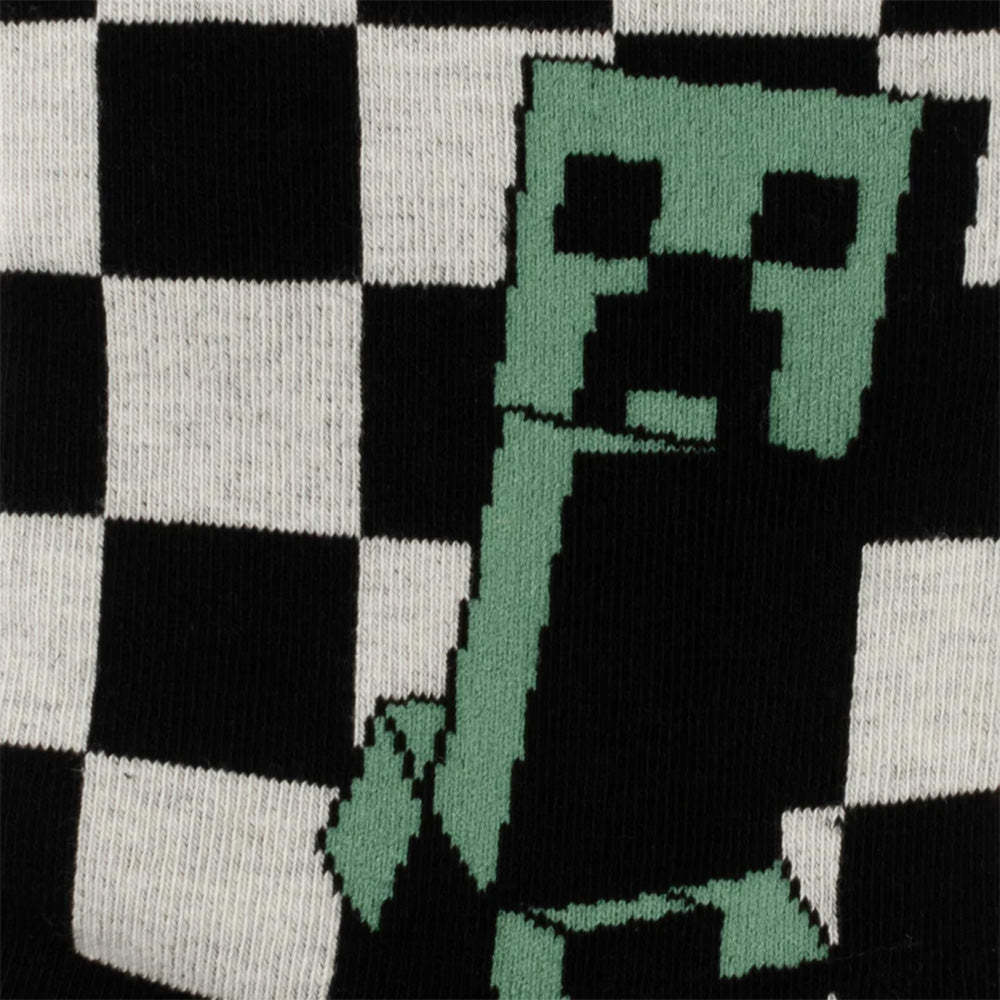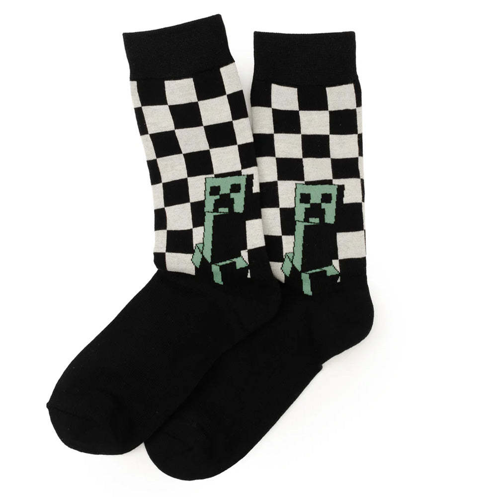 Upgrade your sock game with our Minecraft Creeper Men's Sock Set! This set includes three unique pairs, each featuring a different design inspired by the world of Minecraft. The first pair showcases a sleek black and white checkered pattern, perfect for a subtle nod to your fandom. The second pair is all about the iconic Creeper, with a bold pattern that any true fan will recognize. Finally, the third pair features a vibrant green checkered design, bringing a pop of color and playful style to your outfit.