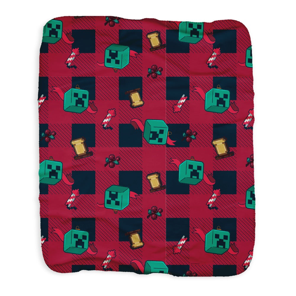 Minethtcraft Creeper Plaid Sherpa Blanket