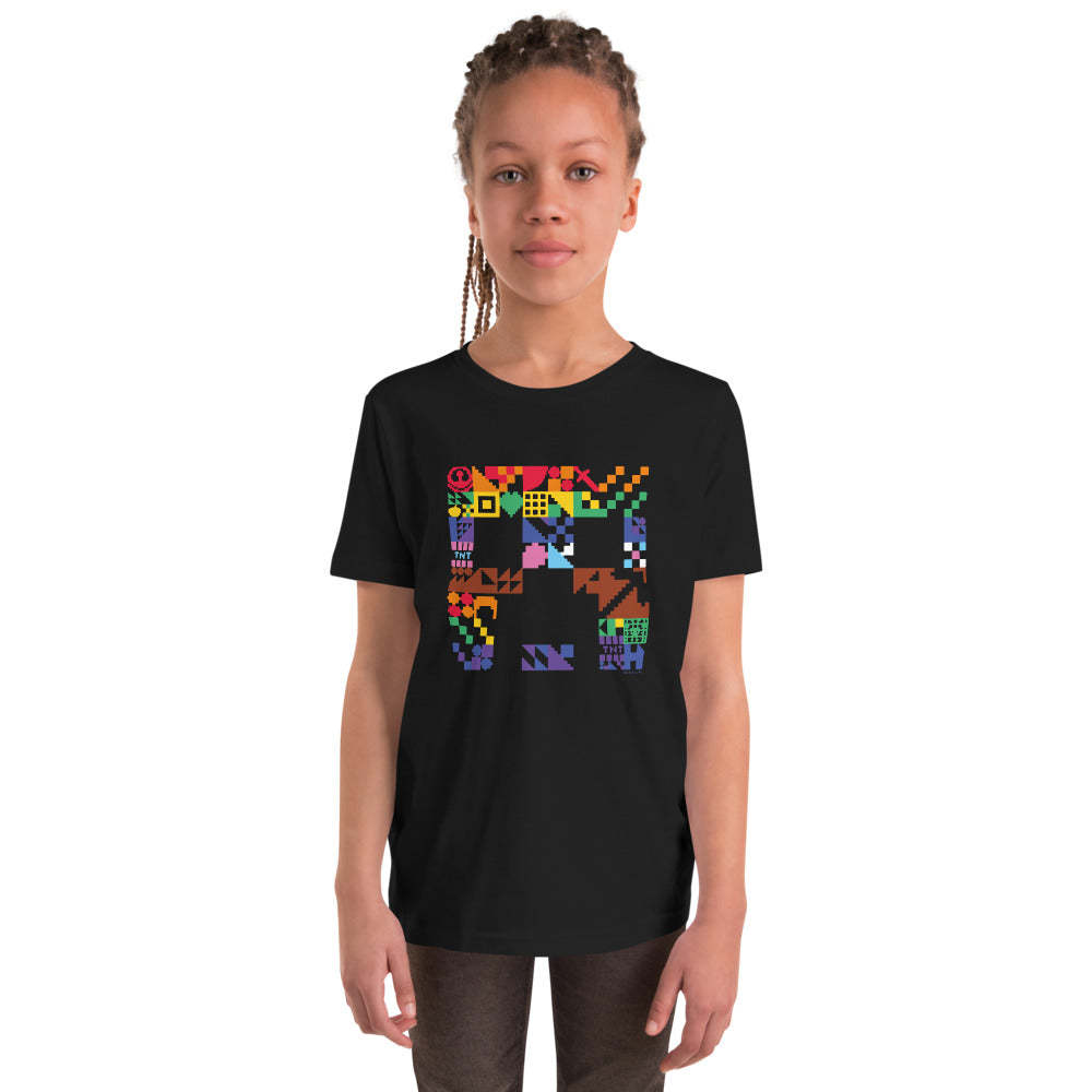 Celebrate individuality and explode with pride in this colorful Minecraft Creeper Pride Kids T-Shirt! Featuring the iconic Creeper with a bold rainbow pixel design, this tee is perfect for young fans who want to show their Minecraft love!