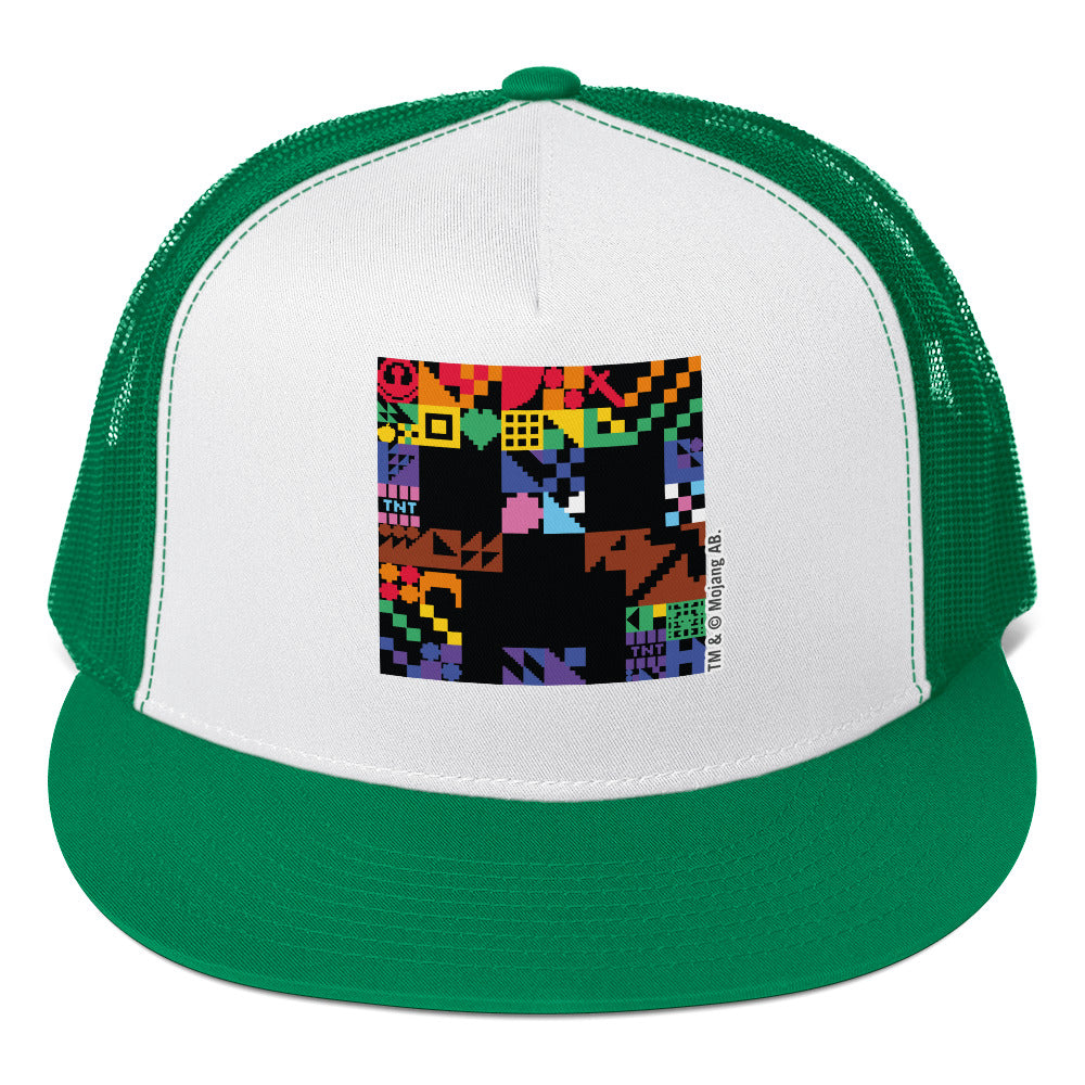 Show your pride in pixel-perfect style with the Minecraft Creeper Pride Trucker Hat! Featuring the iconic Creeper face reimagined in bold, vibrant Pride colors, this breathable mesh-back hat is the ultimate accessory for fans who want to celebrate inclusivity and express their love for Minecraft.
