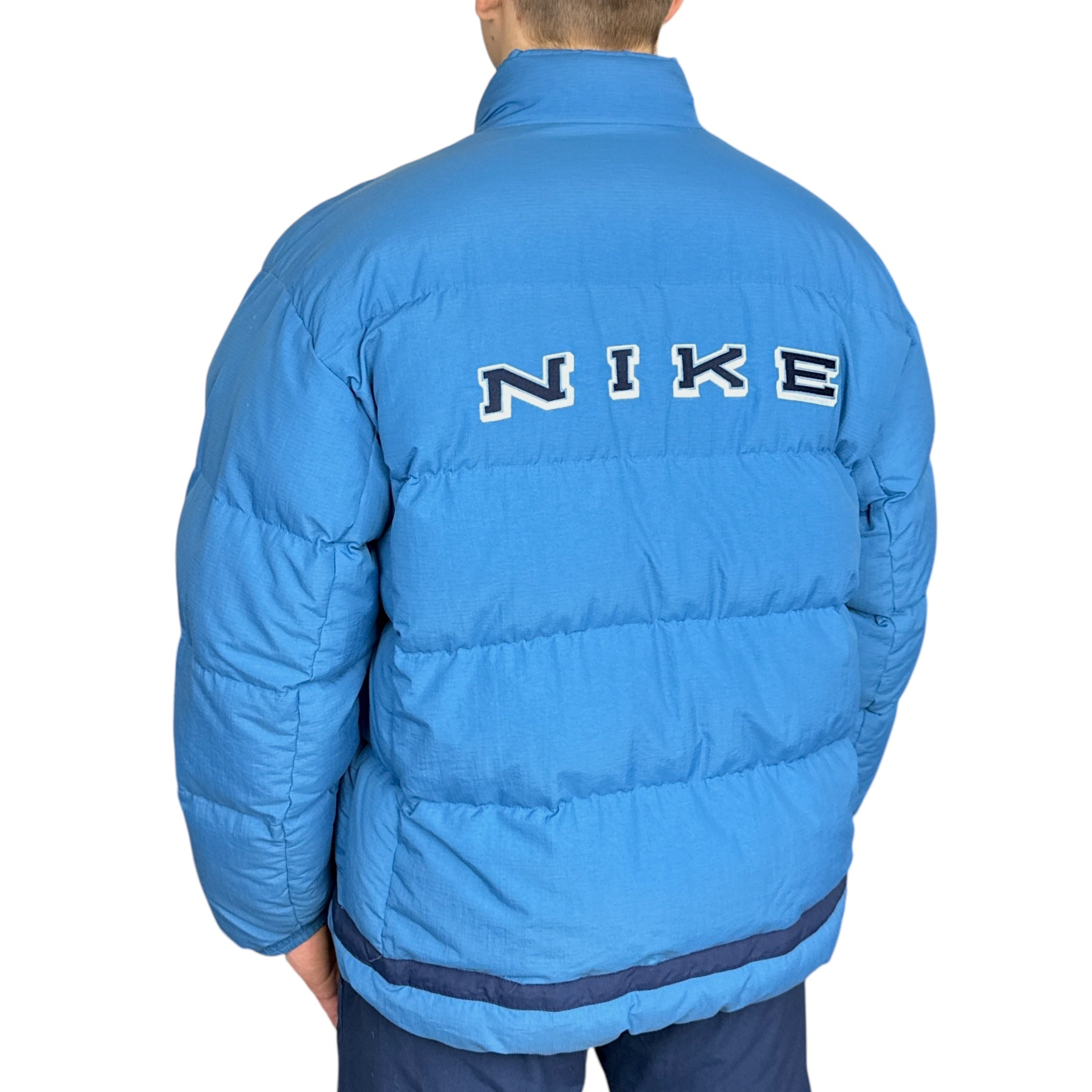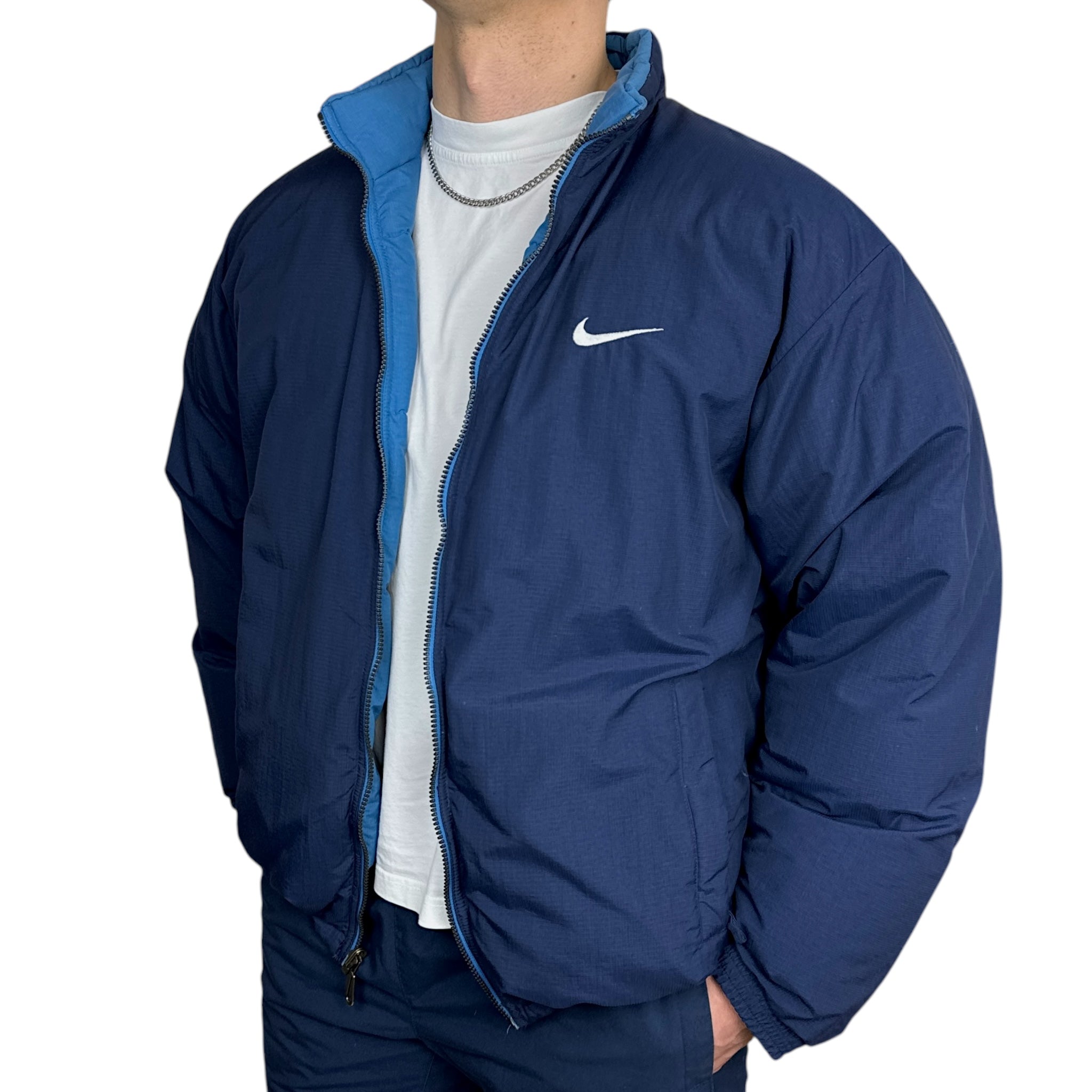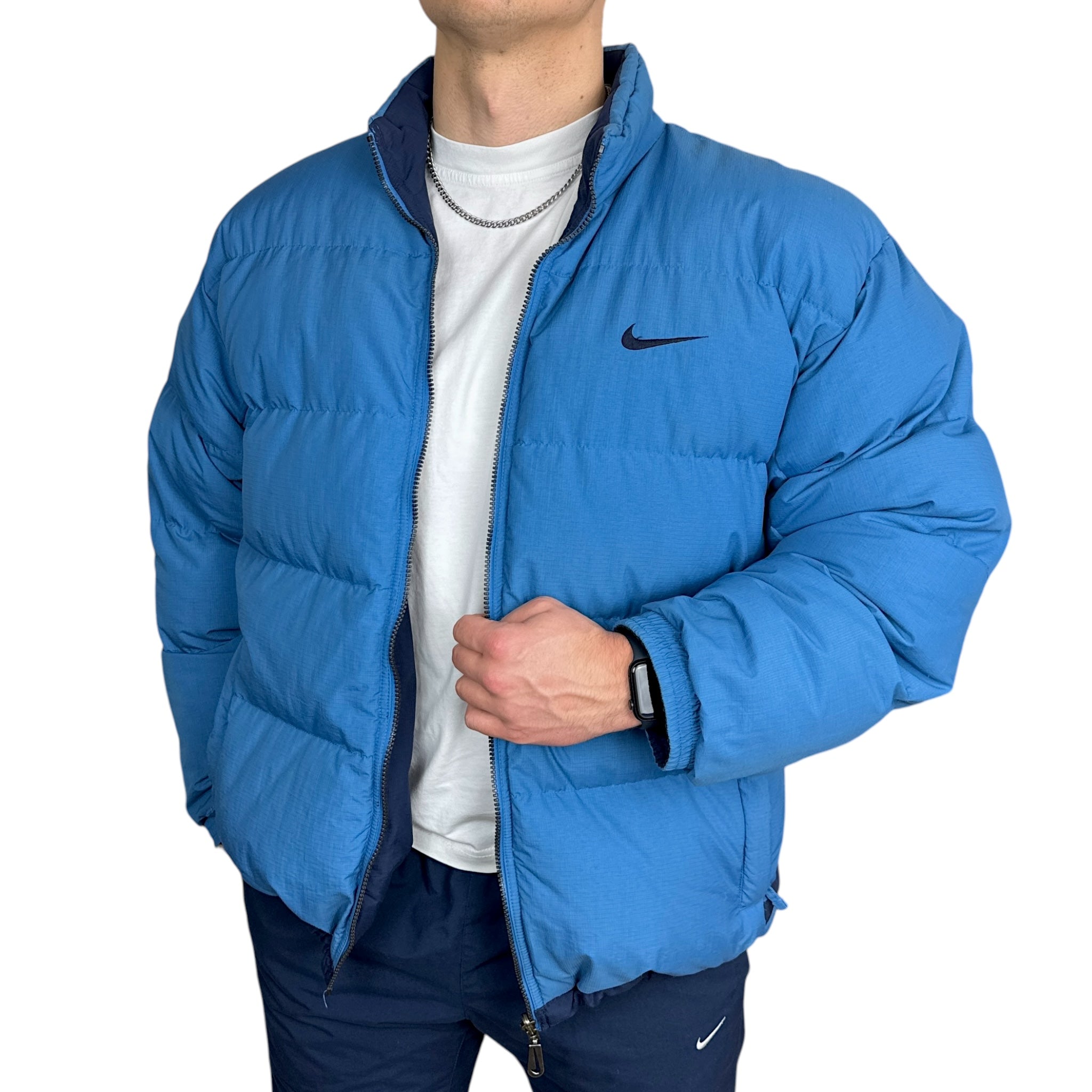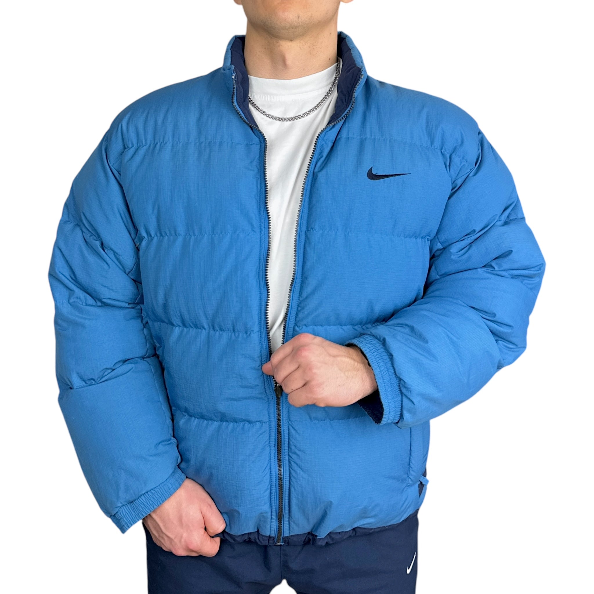 Nike Vintage 90s Reversible Rare Down Spellout Pufferjacke Blau Navy